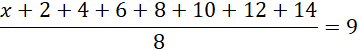 Podaj medianę zestawu x, 2, 4, 6, 8, 10, 12, 14, jeśli jego średnia wynosi 9.