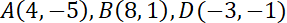 Kolejno oblicz współrzędne punktu C przez przesunięcie punktu D o wektor DC.