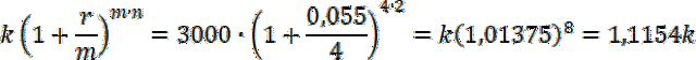 bank B – 5,5% rocznie, odsetki kapitalizowane co kwartał,