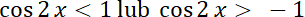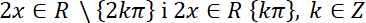 Rozwiązaniem będą więc wszystkie liczby rzeczywiste oprócz tych, dla których funkcja cosinus przyjmuje wartości równe -1 bądź 1: