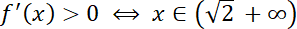 Najpierw wyznacz dziedzinę funkcji f oraz określ jej pochodną f’, a także dziedzinę tej pochodnej. Następnie wyznacz miejsca zerowe funkcji pochodnej. Zauważ, że skoro współczynnik a wielomianu jest dodatni, to zacznij rysować wykres funkcji z prawej strony powyżej osi OX. Na tej podstawie określ znak pochodnej. Skorzystaj z faktu, że gdy pochodna jest ujemna, to funkcja jest malejąca, a gdy pochodna ma znak dodatni, to funkcja rośnie.