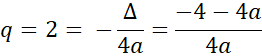 Do wyznaczenia współczynnika a korzystamy ze wzoru na współrzędną y wierzchołka paraboli (q wierzchołka paraboli) , gdzie .