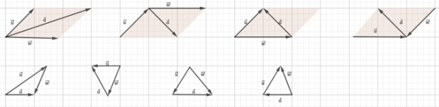 Należy skorzystać z graficznego dodawania i odejmowania wektorów. Do dodawania należy użyć między innymi metody równoległoboku.