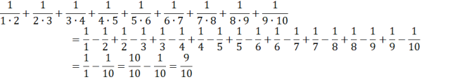 Następnie skorzystaj z podanego wzoru w działaniu znajdującym się w treści zadania. Zauważ, że iloczyn liczb znajdujących się w mianowniku możesz zamienić na różnicę ułamków o mianownikach będących tymi liczbami.