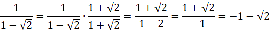 Zauważ, że musisz pozbyć się niewymierności z mianownika, czyli pomnożyć licznik i mianownik ułamka przez wartość znajdującą się w mianowniku, z przeciwnym znakiem pomiędzy wyrażeniami. W mianowniku możesz skorzystać ze wzoru skróconego mnożenia na różnicę kwadratów:
