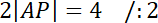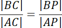 Wykonaj rysunek pomocniczy i skorzystaj z tego, że dwusieczna kąta w trójkącie dzieli przeciwległy bok na odcinki proporcjonalne do pozostałych boków trójkąta. Zapisz to za pomocą równania i wyznacz z niego wartość boku |AP|, a następnie |BP|
