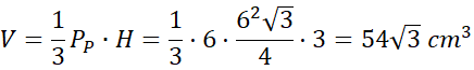 Na koniec oblicz objętość bryły. Skorzystaj z tego, że sześciokąt foremny składa się z 6 trójkątów równobocznych, którego pole całkowite można obliczyć ze wzoru
