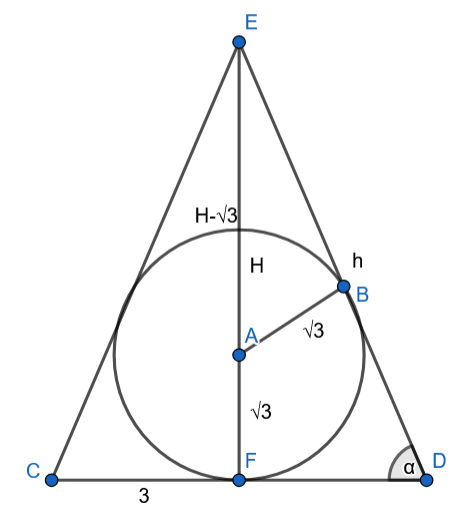 Skorzystaj z twierdzenia Pitagorasa i wyznacz wysokość ściany bocznej. Następnie zauważ, że trójkąty przedstawione na rysunku są podobne. Na tej podstawie zapisz stosunek długości ich krótszych podstaw oraz przeciwprostokątnych i na tej podstawie wyznacz wysokość ostrosłupa.