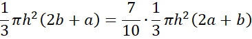Wyznacz stosunek długości podstaw trapezu, jeśli objętość bryły otrzymanej w wyniku obrotu trapezu równoramiennego wokół dłużej podstawy stanowi 70% objętości bryły otrzymanej w wyniku obrotu tego trapezu wokół krótszej podstawy.