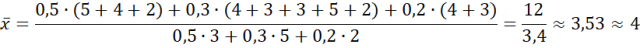 Skorzystaj z tego, że średnia ważona jest ilorazem iloczynu danej wagi z odpowiadającymi im liczbami przez całość, czyli sumę wszystkich wag.