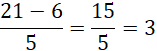 Na osi liczbowej pomiędzy liczbami 6 i 21 jest 5 podziałek.