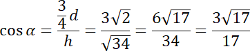 przekątnej podstawy, krawędź podstawy i wysokość przekroju tworzą trójkąt prostokątny. Skorzystaj z twierdzenia Pitagorasa i wyznacz długość ostatniej z nich oraz z funkcji cosinus i wyznacz jego wartość dla podanego kąta.