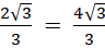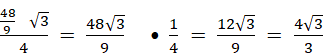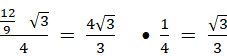 Najpierw obliczymy boki mniejszych trójkątów równobocznych, znając ich wysokość równą 1.