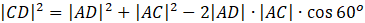 Skorzystaj z twierdzenia cosinusów w trójkącie ADC i oblicz długość boku CD.
