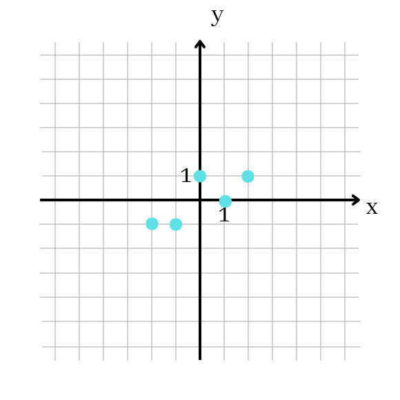 Zaznacz punkty (-2,-1), (-1,-1), (0,1), (1,0), (2,1) w układzie współrzędnych.