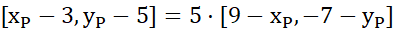 Podaj współrzędne punktu P, jeżeli |AP|: |PB| = 5 : 1. Wiadomo, że A(3,5), B(9,-7).