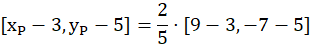 Podaj współrzędne punktu P, jeżeli |AP| : |PB| = 2 : 3. Wiadomo, że A(3,5), B(9,-7).