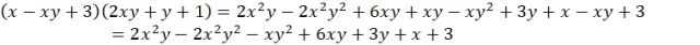 Wymnóż przez siebie dwa nawiasy i dodaj do siebie jednomiany, które przy wszystkich zmiennych mają takie same potęgi.