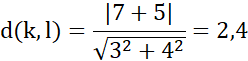 Należy wyznaczyć odległość między prostymi k:3x-4y+7 = 0 oraz l:3x-4y-5 = 0.