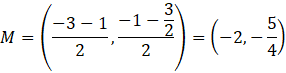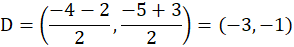 Punkty D, E są środkami kolejno boków AC i BD, gdzie A(-4,-5), B(1,-2), C(-2,3). Należy wyznaczyć współrzędne punktu M, który jest środkiem odcinka DE.