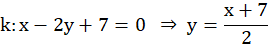 Należy wyznaczyć na prostej k:x-2y+7 = 0 punkt P spełniający warunki zadania.