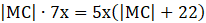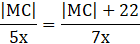 Dany jest trapez ABCD, którego ramiona AD i BC wydłużono tak, że stykają się w jednym punkcie (jak na rysunku obok). Ramię BC ma długość 22 cm, a stosunek podstaw |AB| : |CD| ma się jak 7 : 5. Oblicz długość CM.