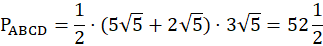 Należy obliczyć pole i obwód trapezu o wierzchołkach A(1,-4), B(11,1), C(2,4), D(-2,2).