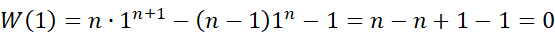 daje wynik 1, gdy n jest liczbą naturalną dodatnią.