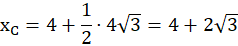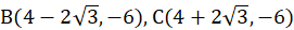 Okrąg jest styczny w punkcie A(4,0) do osi OX oraz styczny do ujemnej półosi OY. Należy tak wyznaczyć na okręgu punkty B i C, aby razem z punktem A tworzyły trójkąt równoboczny.