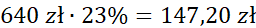 Oblicz, ile wynosi 23% z 640 zł, a następnie dodaj tę kwotę do ceny, aby ustalić cenę, którą zapłaci klient w sklepie.