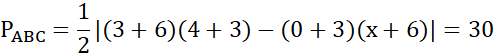 Znane są dwa wierzchołki A(-6,-3), B(3,0) trójkąt ABC. Należy wyznaczyć punkt C leżący na prostej k: y = 4 w taki sposób, by miał pole równe 30.