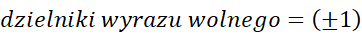 Sprawdzamy dzielniki wyrazu wolnego wielomianu, które mogą być pierwiastkami wielomianu, aż do skutku. Wielomian
