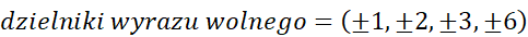 Sprawdzamy dzielniki wyrazu wolnego wielomianu, które mogą być pierwiastkami wielomianu, aż do skutku. Wielomian