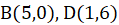 Znane są dwa wierzchołki kwadratu ABCD: A(0,1) i C(6,5). Należy obliczyć współrzędne wierzchołków B i D danego kwadratu.