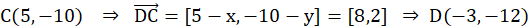 Znane są dwa wierzchołki kwadratu ABCD: A(-5,-4), B(3,-2). Należy obliczyć współrzędne wierzchołków B i D danego kwadratu.