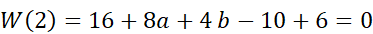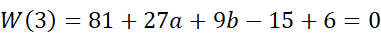Jeśli któryś z dzielników wyrazu wolnego podstawiony jako argument do wielomianu zwraca wartość 0 to oznacza, że jest jego pierwiastkiem. Dzięki przyrównaniu wartości wielomianu dla pierwiastka otrzymujemy dwa różne równania, dla dwóch niewiadomych, dzięki czemu możemy obliczyć ich wartości.