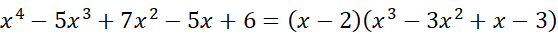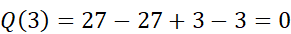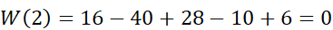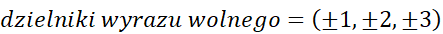Jeśli któryś z dzielników wyrazu wolnego podstawiony jako argument do wielomianu zwraca wartość 0 to oznacza, że jest jego pierwiastkiem. Dzięki przyrównaniu wartości wielomianu dla pierwiastka otrzymujemy dwa różne równania, dla dwóch niewiadomych, dzięki czemu możemy obliczyć ich wartości