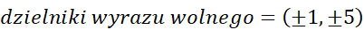 Jeśli któryś z dzielników wyrazu wolnego podstawiony jako argument do wielomianu zwraca wartość 0 to oznacza, że jest jego pierwiastkiem. Do dzielenia wielomianu przez dwumian należy skorzystać ze schematu Hornera.