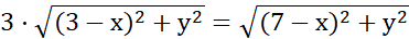 Należy podać równanie krzywej, będącej zbiorem wszystkich punktów, których odległość między punktem B(7,0) jest trzykrotnie większa niż od punktu A(3,0).
