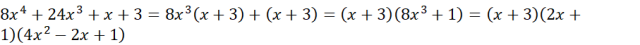 Należy wyciągnąć wspólny czynnik poza nawias do momentu, aż zostanie wielomian w postaci iloczynowej.