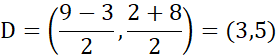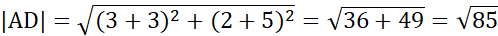 Należy wyznaczyć długości środkowych AD, BE, CF trójkąta ABC, jeżeli A(-3,-2), B(9,2), C(-3,8).