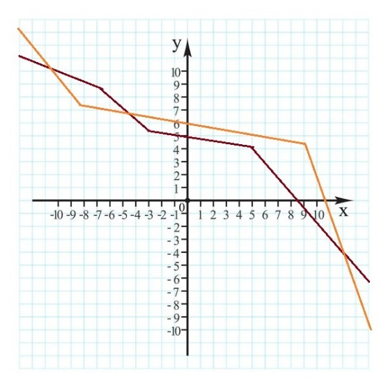 Narysuj wykresy dwóch funkcji malejących przecinających się w trzech punktach.