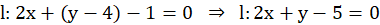 Należy wyznaczyć prostą l, która jest przesuniętą prostą k: 2x + y – 1=0 o wektor
