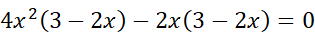 Aby rozwiązać to równanie należy przenieść niewiadome na jedną stronę oraz przyrównać całe równanie do zera. Następnie przedstawić wielomian w postaci iloczynowej dzięki czemu otrzymamy pierwiastki wielomianu oraz szukane wartości.