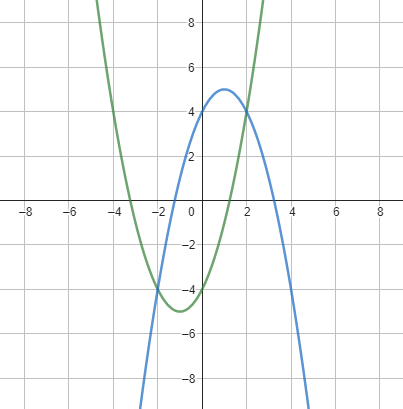 Należy naszkicować dwie parabole na jednym układzie współrzędnych.