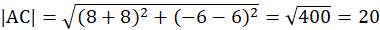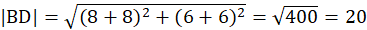Należy obliczyć długości przekątnych czworokąta ABCD.