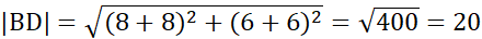 Należy obliczyć długości przekątnych czworokąta ABCD.