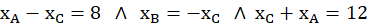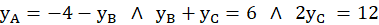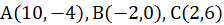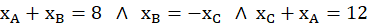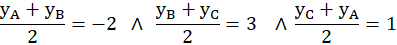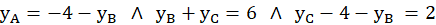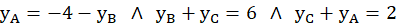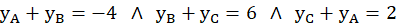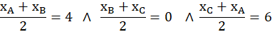 Należy wyznaczyć wierzchołki trójkąta ABC, znając punkty D(4,-2), E(6,1), F(0,3) będą środki boków kolejno AB, BC i AC.