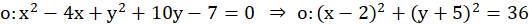 Należy wyznaczyć równanie okręgu o w symetrii osiowej OX.