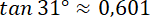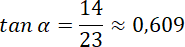 Oblicz tangens kąta pod jakim padają promienie słoneczne. Przybliżona wartość tego tangensa to 0,609. Zauważ, że przybliżona wartość